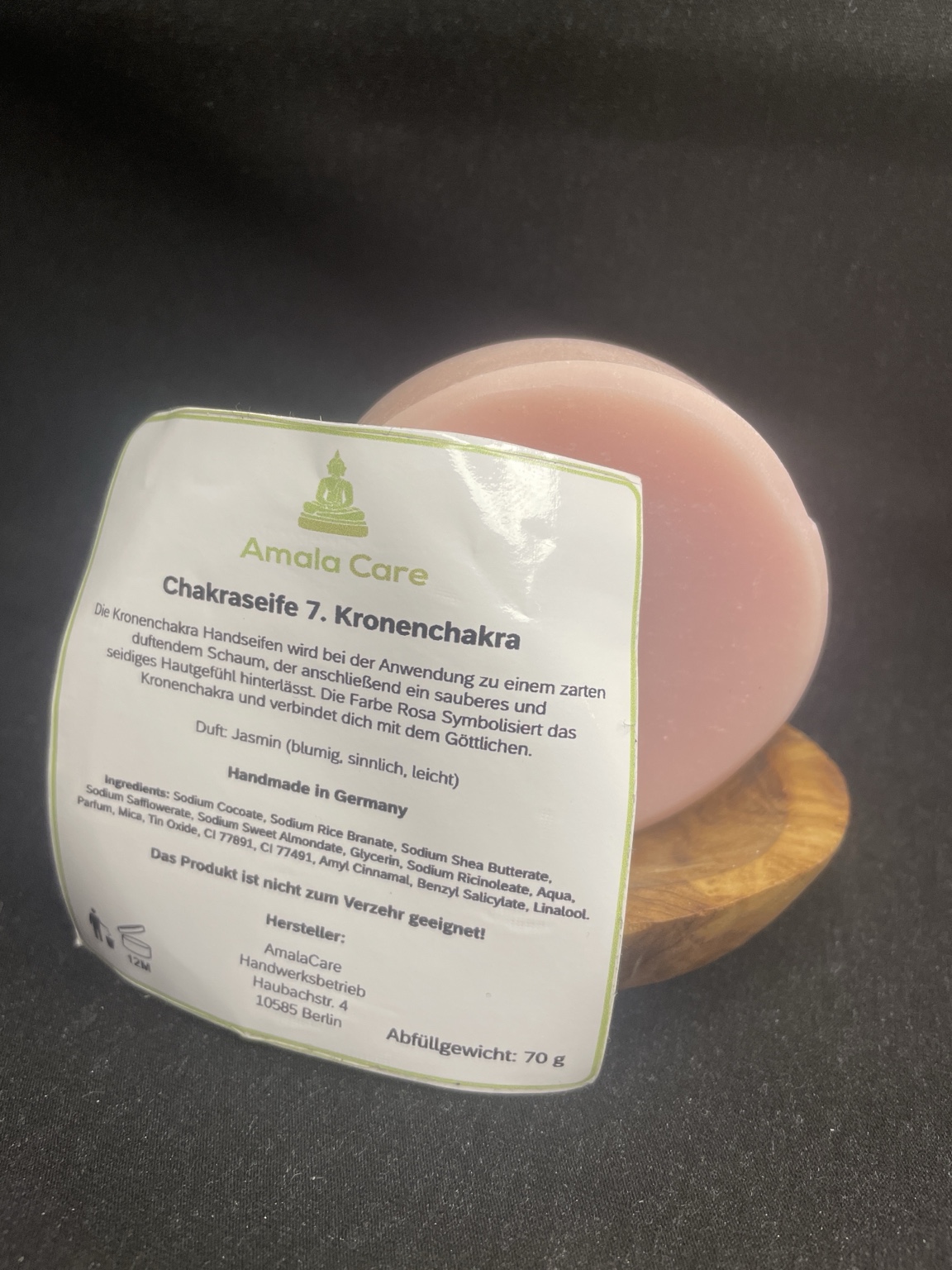 Tauche ein in einen Moment purer Ruhe und innerer Balance – mit der handgefertigten Chakra Naturseife für das Kronenchakra. Diese edle Seife vereint sanfte Pflege mit einem zarten, blumigen Jasminduft, der deine Sinne umhüllt und für ein harmonisches Duscherlebnis sorgt.