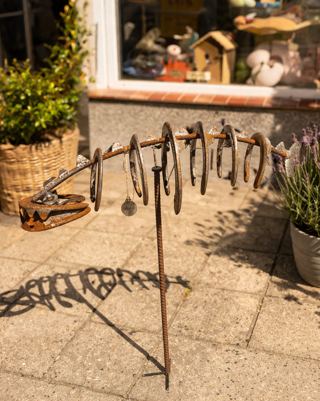 Ob als dekoratives Statement im Vorgarten, als Blickfang zwischen Pflanzen oder als originelle Geschenkidee – dieser Hufeisen-Fisch bringt Persönlichkeit und Individualität in jeden Außenbereich.