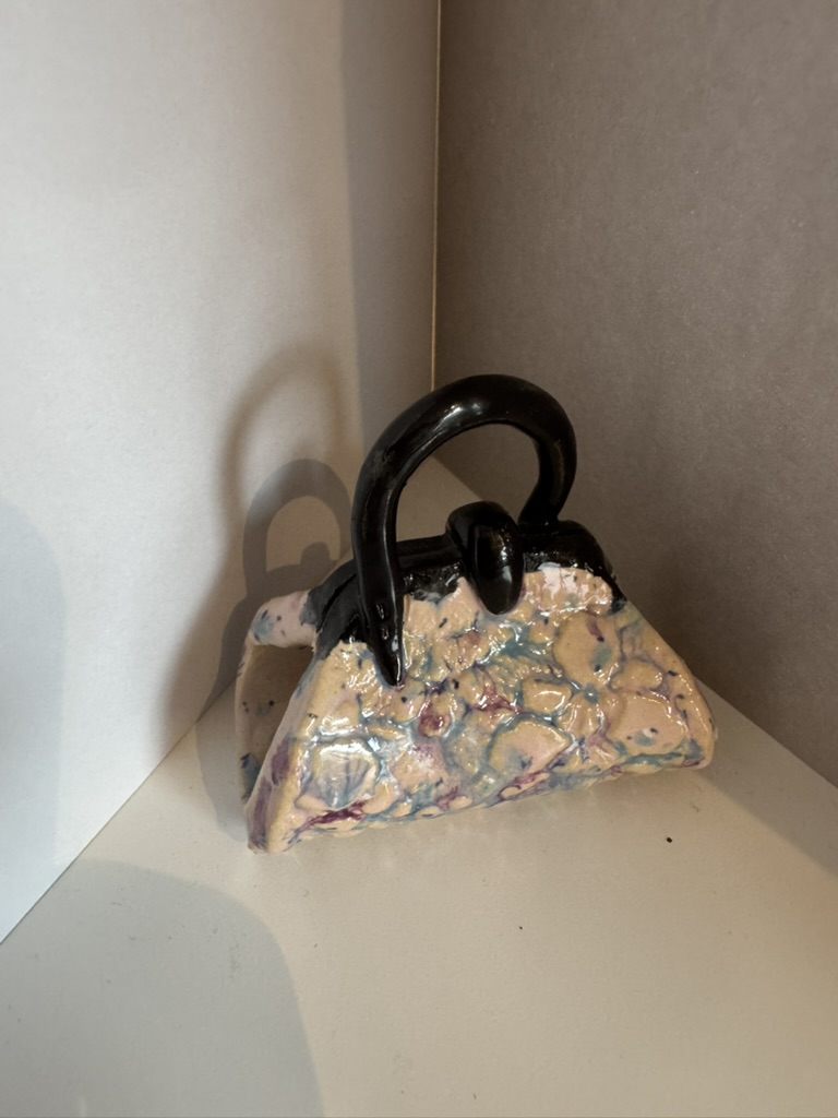 Geldgeschenk aus handgefertiger Keramik in Taschenform aus Falkensee